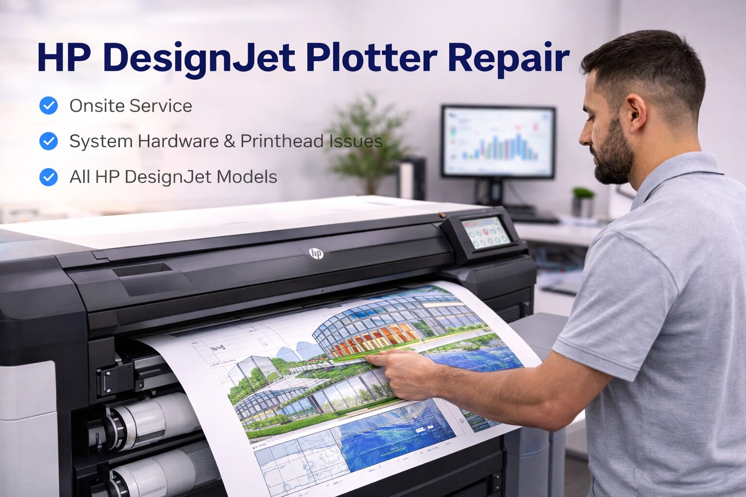Onsite Printer Services provides fast, professional onsite printer repair throughout San Diego County. Our certified technicians come directly to your office, school, warehouse, or healthcare facility for same-day service. We service HP LaserJet, DesignJet, Latex, Enterprise, and MFP printers, handling everything from hardware failures and error codes to paper jams and print quality issues—all onsite to minimize downtime.